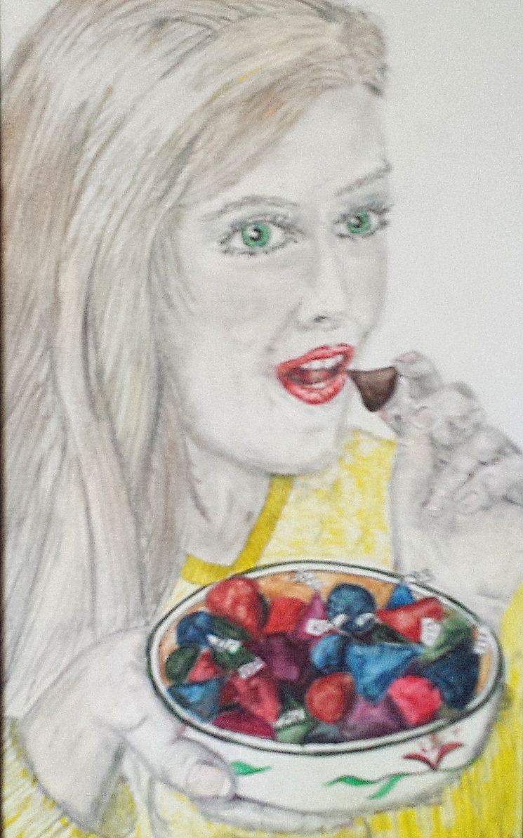 Candy Girl. Graphite and watercolor with ink